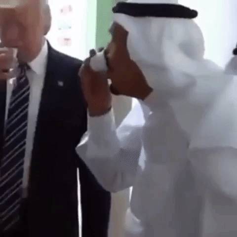 Peristiwa ini terjadi pada Sabtu akhir pekan lalu dalam upacara penyambutan Trump di bandara Riyadh. Dalam tradisinya, tamu kenegaraan disambut dengan secangkir kopi. Kopi Saudi terkenal keras, lebih keras dibanding yang ada di AS.